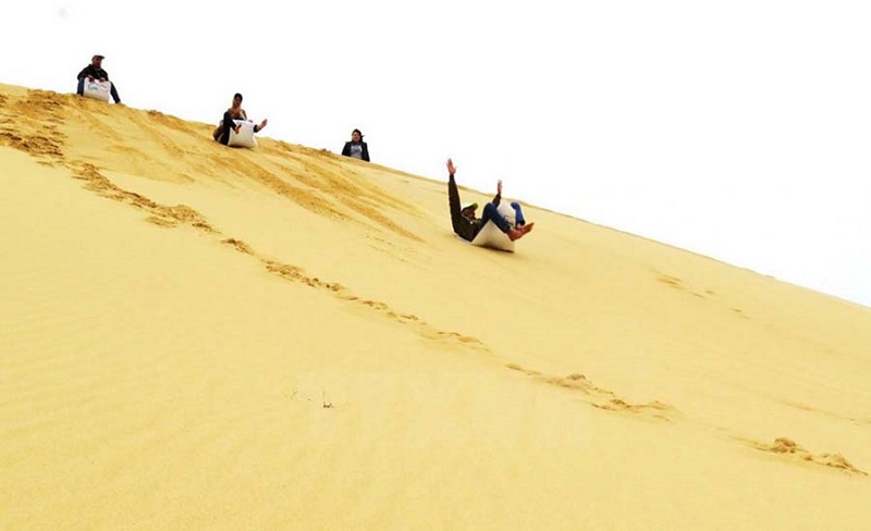 Đến Đồi Cát phương Mai, không chỉ có tham quan ngắm cảnh hay chụp hình, bạn nhớ phải trải nghiệm trò trượt cát cực kỳ thú vị không thua kém đồi cát Mũi Né đâu bạn nhé. Bạn hãy tìm đến đồi cát có độ cao tương đối tốt, tuy lúc leo lên có mệt chút nhưng bù lại lúc trượt băng băng xuống với tốc độ 30-40km/h sẽ cho bạn cảm giác thích thú không gì bằng. Thông thường nếu muốn tham gia trò chơi này, bạn nên đăng ký trước với công ty du lịch để được chuẩn bị sẵn sàng dụng cụ giúp bạn có những trải nghiệm tuyệt vời nhất bạn nhé.